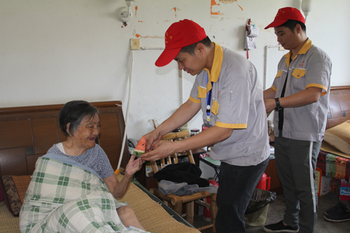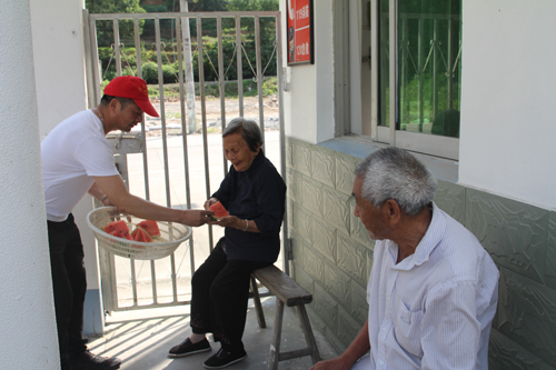 慰問(wèn)中,黨支部成員們將好心人捐贈(zèng)給黃巖慈善義工隊(duì)的西瓜切好,熱情地送到老人們的手中,并詳細(xì)詢(xún)問(wèn)了老人們的生活、身體狀況等,叮囑老人保重身體,送上端午祝福。老人們臉上洋溢著幸福的笑容,對(duì)大家的善舉深表感謝。
