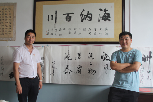面對此情此景,一行人按捺不住內(nèi)心的喜悅,有與當(dāng)?shù)貢洉沉臅r代政策優(yōu)勢的,有聽講解員講解村建之路的,有觀摩描述沈岙千年軌跡的,有紛紛拍照留戀的。作為市書法協(xié)會會員的冉部長,還饒有興致的提筆寫道:數(shù)風(fēng)流人物,還看沈岙。